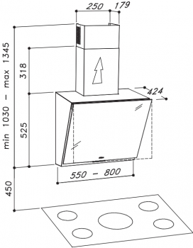 Ovládání: elektronické/4 stupně/osvětlení/časovač/automatické vypnutí po 4 hodinách/indikace nasycení tukových filtrů