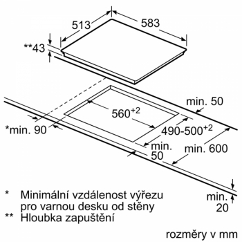min. tloušťka pracovní desky: 20 mm