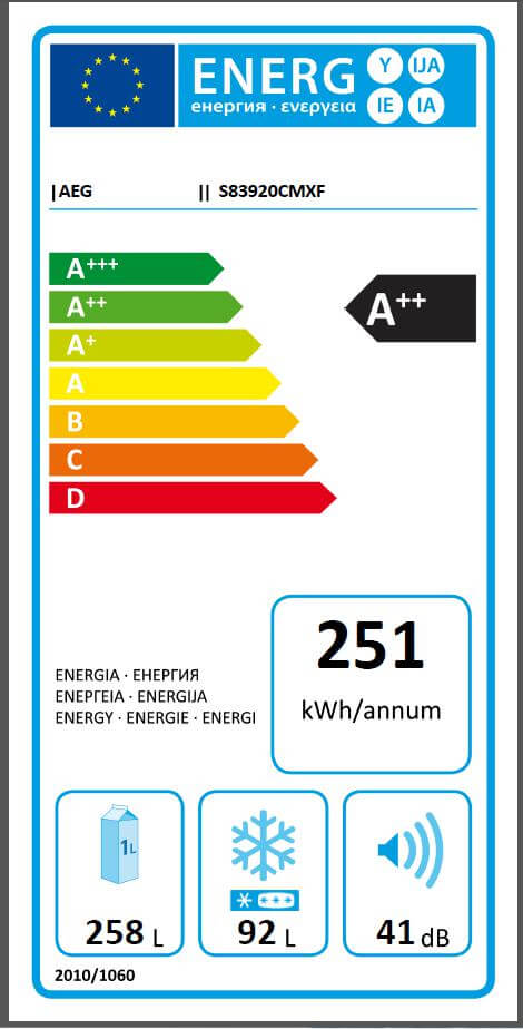 Energetická třída A++ – o 21 % energeticky úspornější než spotřebiče třídy A+ Uchovávejte vaše potraviny energeticky úsporněji -pomocí této chladničky s mrazničkou třídy A++. Spotřebiče třídy A++ jsou o 21 % energeticky úspornější než spotřebiče třídy A+.