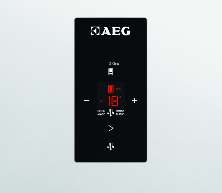 Automatické odmrazování Funkce Coolmatic - rychlé zchlazení potravin Mraznička s funkcí Frostmatic - rychlé zmrazení Elektronická kontrola teploty na LCD displeji. Displej je umístěn na dveřích chladničky.