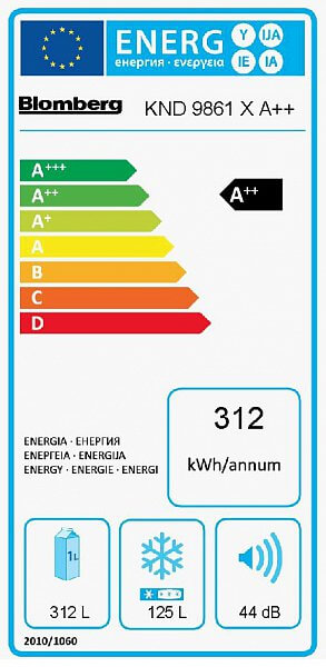 Důležité informace: Energetická třída: A++ Spotřeba energie: 0,85kWh/24h Užitný objem: 437l Čistý objem chladničky: 312l Čistý objem mrazničky: 125l Hlučnost: 44dB Rozměry: 191×70×68cm (VxŠxH)