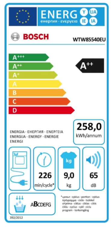 třída spotřeby energie: A++ v rozsahu tříd energetické účinnosti od A+++ do D