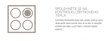 Kontrolní funkce: akustický signál, automatické zahřátí, funkce POWER (Booster) = rychlé ohřátí, dětský zámek, Zajištění/odjištění ovládacího panelu, minutka, indikátory zbytkového tepla, Funkce STOP + POKRAČOVAT, ukazatel času