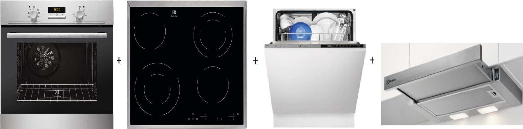 Cenově výhodný set Electrolux - horkovzdušná trouba + sklokeramická varná deska + myčka nádobí + odsavač par