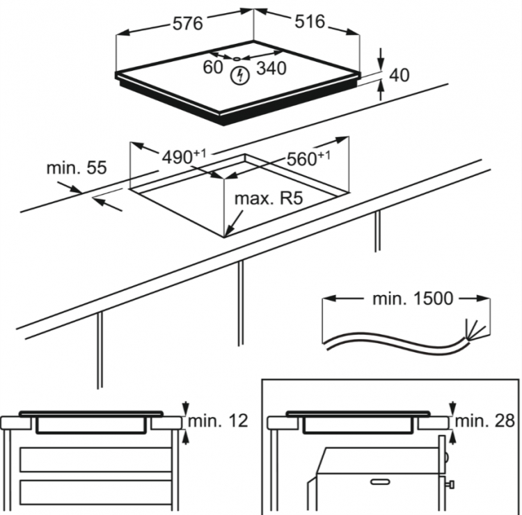 Prostor pro instalaci VxŠxH (mm): 593x560x550