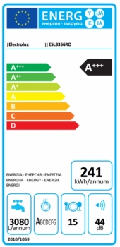 Kapacita mytí: 15: Podle normy IEC pro sadu nádobí. Jednou sadou nádobí je podle této normy: talíř, hluboký talíř, dezertní talíř, sklenice, čajový šálek s podšálkem, nůž, vidlička, polévková lžíce, dezertní lžíce a lžička.