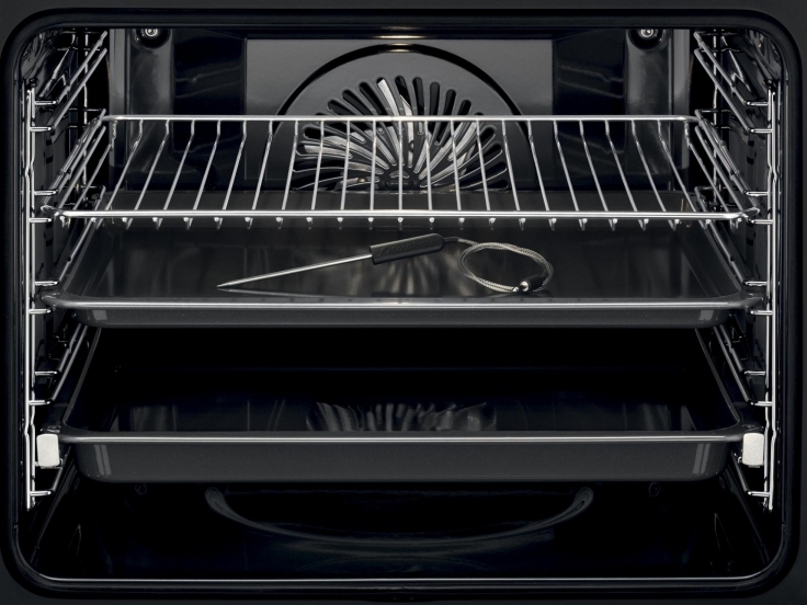 Teplotní sonda: Teplotní sonda je podstatná pro rozhodnutí, zda je již pokrm připraven. Je přímo spojena s ovládacím panelem a pracuje jako teploměr. Zasunete sondu do středu masa nebo ryby, nastavíte teplotu a až bude pokrm upečen tak, jak si přejete, budete na to upozorněni.
