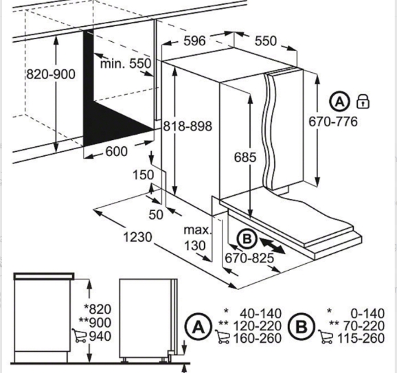 Vestavné rozměry V(min/max)xŠxH (mm): 820/900 x 600 x 570