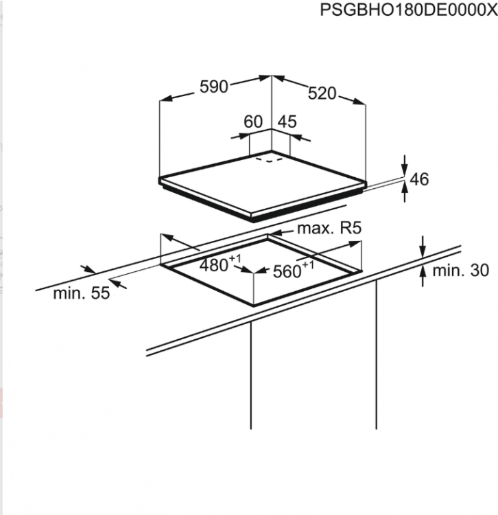 Prostor pro instalaci VxŠxH (mm): 600x560x550
