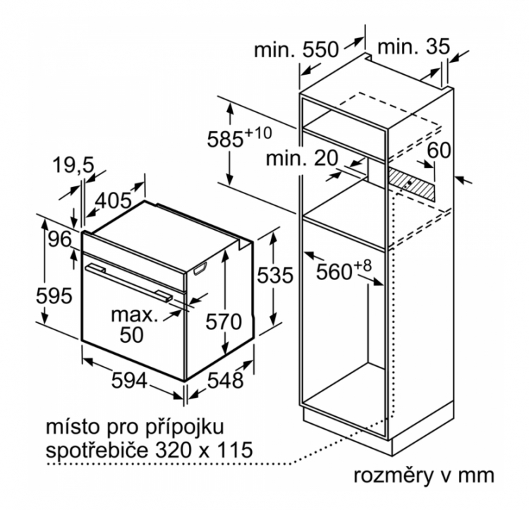 rozměry niky (v x š x h): 585 mm - 595 mm x 560 mm - 568 mm x 550 mm