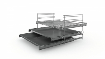 Náš systém teleskopických výsuvů je velmi stabilní a komfortní. Pokud jsou kolejnice plně vysunuty, speciální úchytný mechanismus je zafixuje a případná kontrola stavu vaší večeře je velmi jednoduchá a zároveň bezpečná.