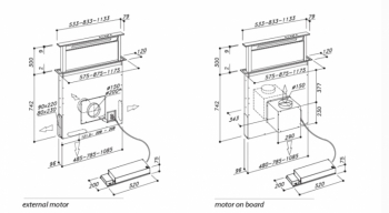 Výřez otvoru pro digestoř je 842x100mm