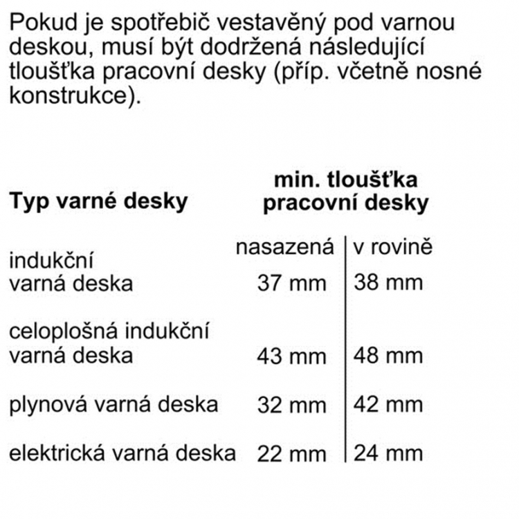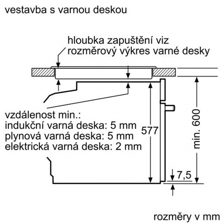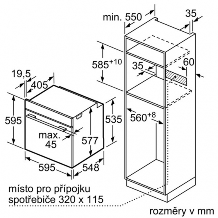 | Minimální výška výklenku | 585 mm |