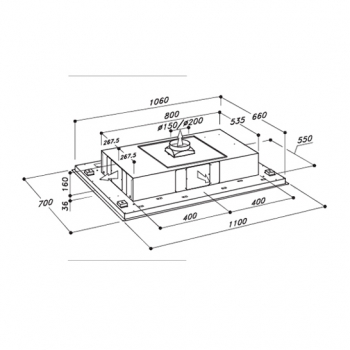 Výřez otvoru na digestoř v podhledu je: 1065x665mm
