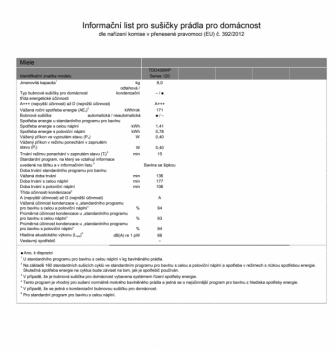 Spotřeba elektrické energie ve standardním programu Bavlna - suché k uložení při plném naplnění v kWh 1,41