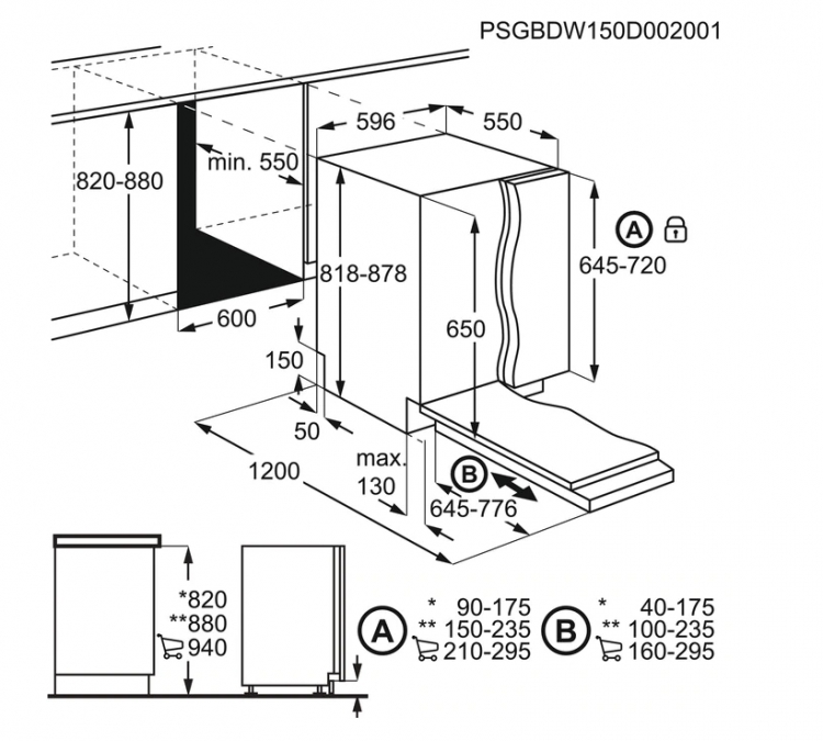 Vestavné rozměry V(min/max)xŠxH (mm): 820/880 x 600 x 550