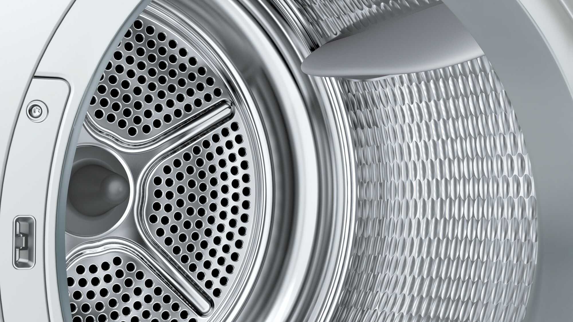 systém šetrného sušení SensitiveDrying: velký nerezový buben se speciální strukturou a unašeči s měkkým povrchem pro jemnou péči o prádlo