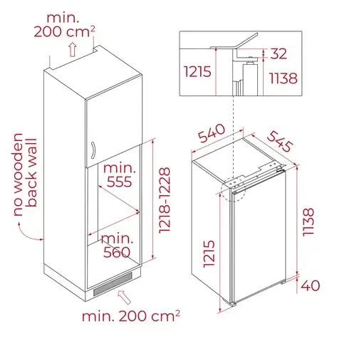 Výška pro vestavbu (mm): 1215