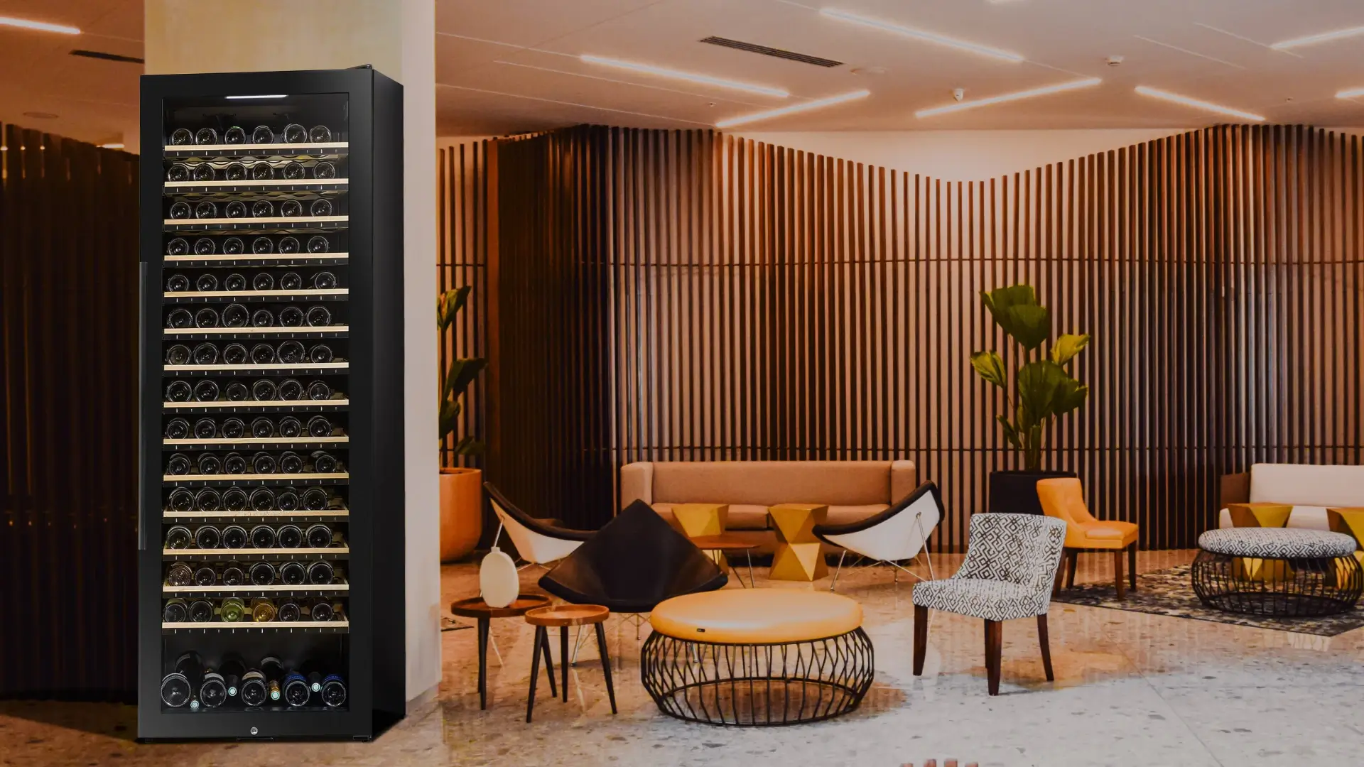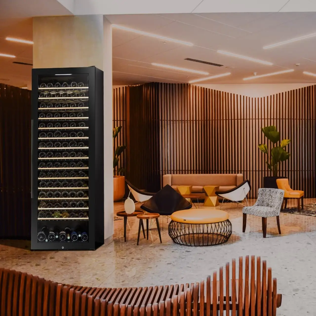 Víceúčelová volně stojící chytrá vinotéka La Sommeliere s WIFI konektivitou; Podpora aplikace Vinotag® (Google Play a App Store) včetně detekce lahví díky chytrým policím s LED indikátory. Propojení aplikace Vinotag s největší světovou databází vín Vivino umožňuje rychlý přístup k informacím o Vašich vybraných vínech.