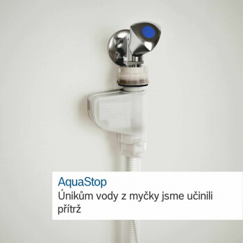 Za kvalitu doživotně ručímeSystém AquaStop vás chrání před vytopením, a to po celou dobu životnosti spotřebiče. Jakmile senzor detekuje únik, myčka automaticky zastaví provoz a odčerpá vodu hadicí s dvojitou stěnou. Díky speciální povrchové úpravě umíme nabídnout 10letou záruku na celý vnitřní prostor proti korozi na všechny naše myčky nádobí. | ![]() |