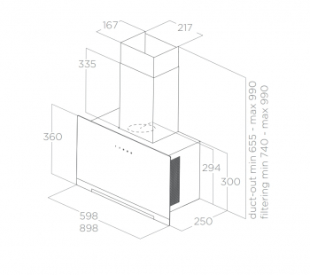 Přední skleněný panel se díky svému plochému tvaru velmi snadno čistí. Aplomb byl navíc navržen tak, aby byla jeho údržba snadná a bezpečná: jakmile je panel otevřený, je možný přímý přístup k vnitřní části digestoře bez jakékoli překážky a tukové filtry lze vyjmout pouhým vysunutím .