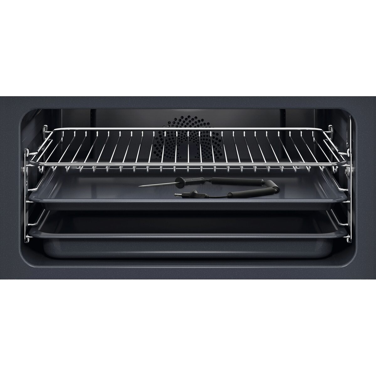 Výbava trouby - plechy: 1 smaltovaný koláčový plech na pečení, 1 odkapávací pekáč šedý smalt