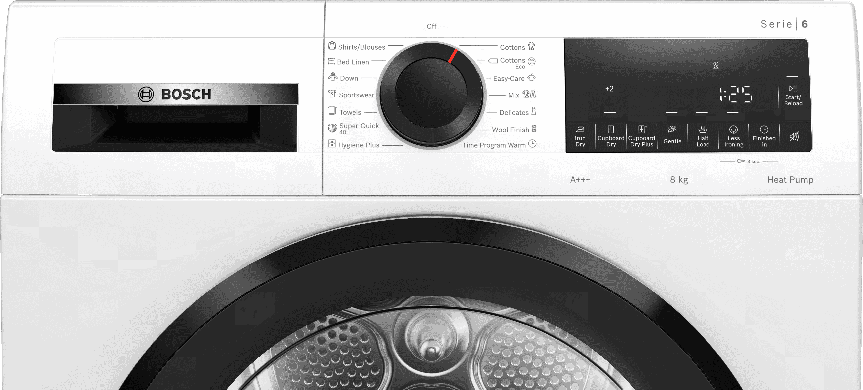 ![]() | Sušičky s tepelným čerpadlem a samočisticím kondenzátoremSušičky s tepelným čerpadlem a samočisticím kondenzátorem chrání vaše oblečení, přičemž zůstávají vysoce energeticky účinné. Díky technologii Self Cleaning Condenser se kondenzátor čistí automaticky, a to až čtyřikrát během procesu sušení. Tím se udržuje špičkový energetický výkon spotřebiče, cyklus za cyklem. Sušičky s tepelným čerpadlem Bosch jsou navrženy tak, aby pracovaly efektivně a sušily prádlo šetrně a dokonale. |