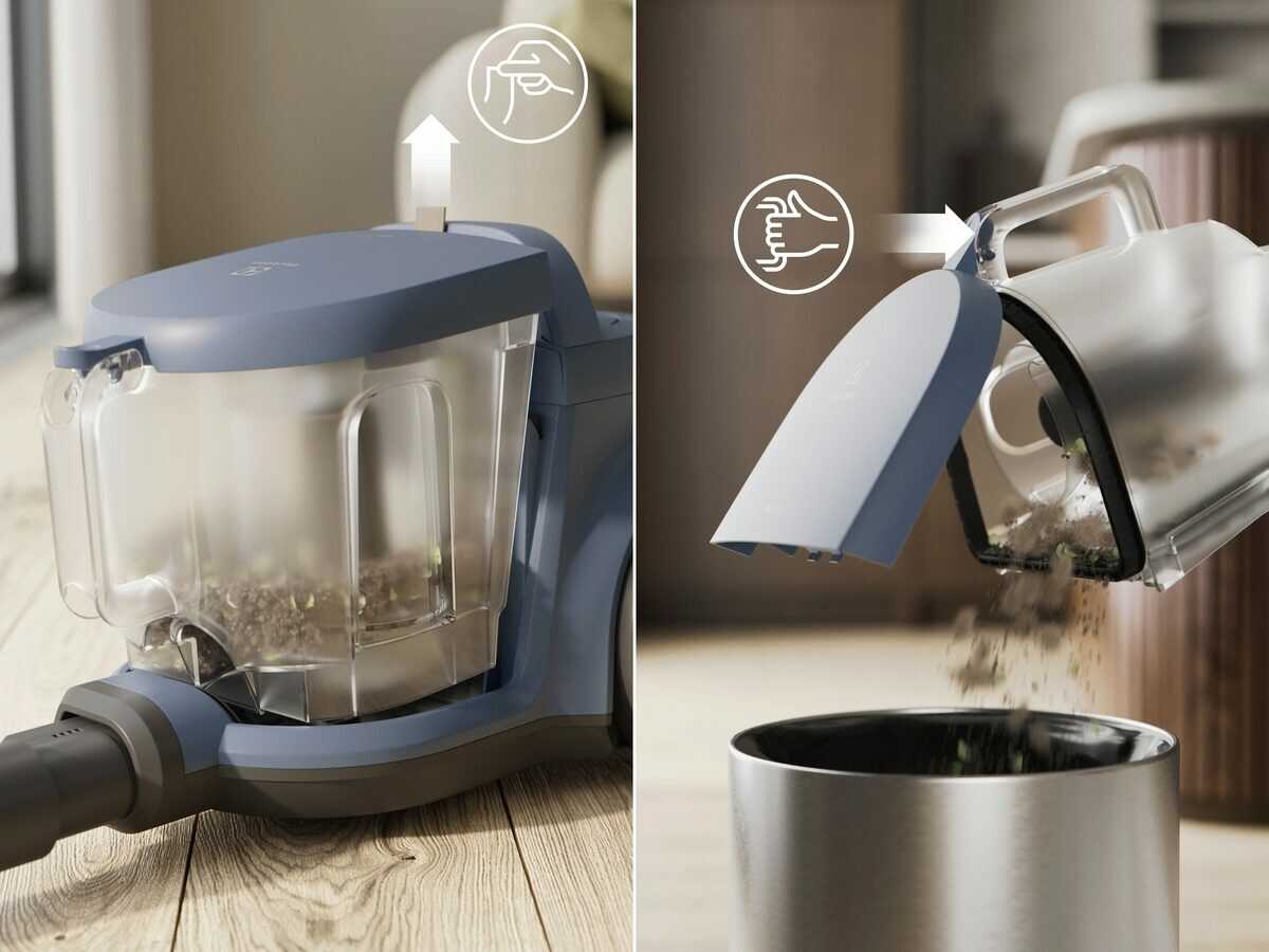 Bezsáčkový vysavač: Nemusíte sledovat, které vhodné sáčky kupovat a kde je ukládat. Nádoba na prach i filtry jsou snadno ovladatelné.