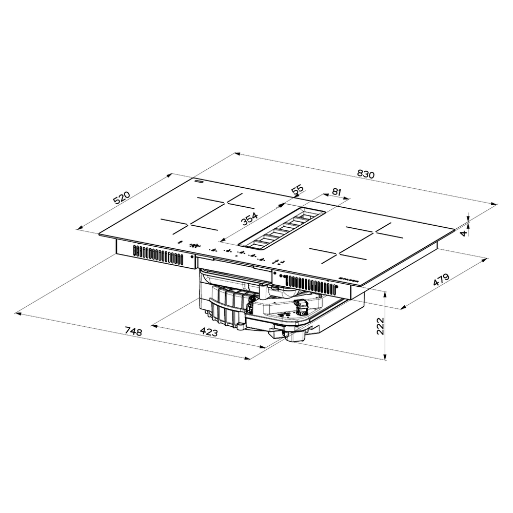 Slim suction technologie – dlouhý a úzký odsávací otvor odvádí páru a pachy přímo z varné plochy