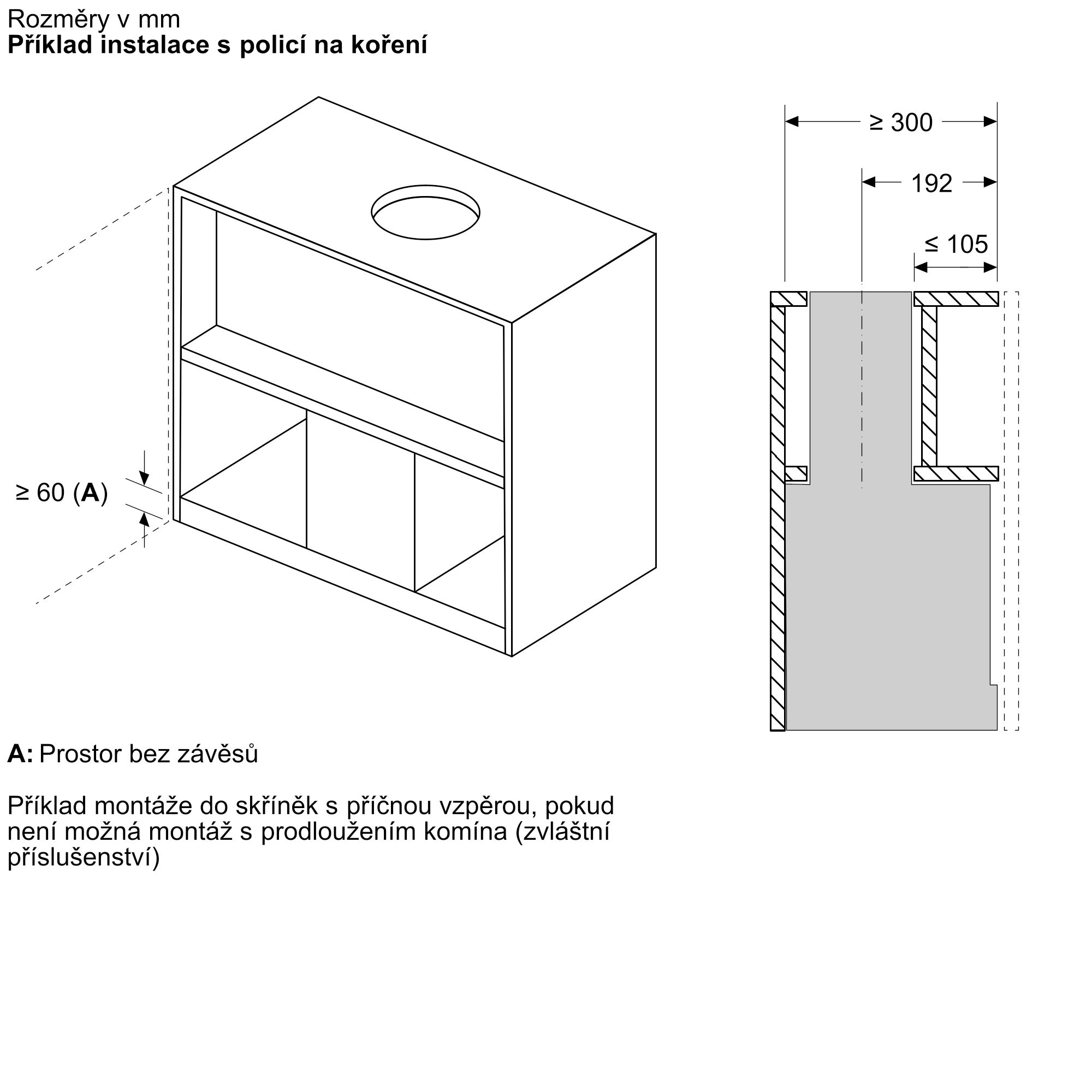 pro instalaci odsavače par do vyšších nástěnných skříněk lze jako volitelné příslušenství dokoupit prodloužení komínu