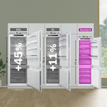 ![]() | Jednoduché uskladnění a dokonalý přehledBezrámové skleněné police jsou odolné vůči nárazu a díky mechanismu plynulého vysouvání se mimořádně pohodlně používají. Vždy máte navíc dokonalý přehled o svých zásobách potravin. |