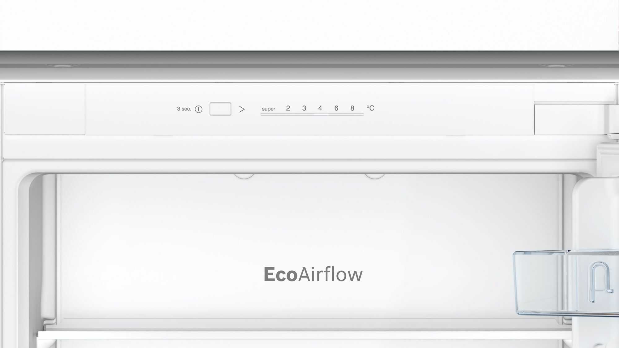 Chladnička, která se připraví na nové potravinyKdyž při odchodu na nákup aktivujete funkci SuperChlazení, chladnička na krátkou dobu sníží teplotu, aby ji čerstvý nákup nezvýšil. Teplota se sníží stisknutím tlačítka super (na maximálně 2 °C). Aby se předešlo zbytečné spotřebě energie, funkce se po přibližně 6 hodinách automaticky vypne. | ![]() |