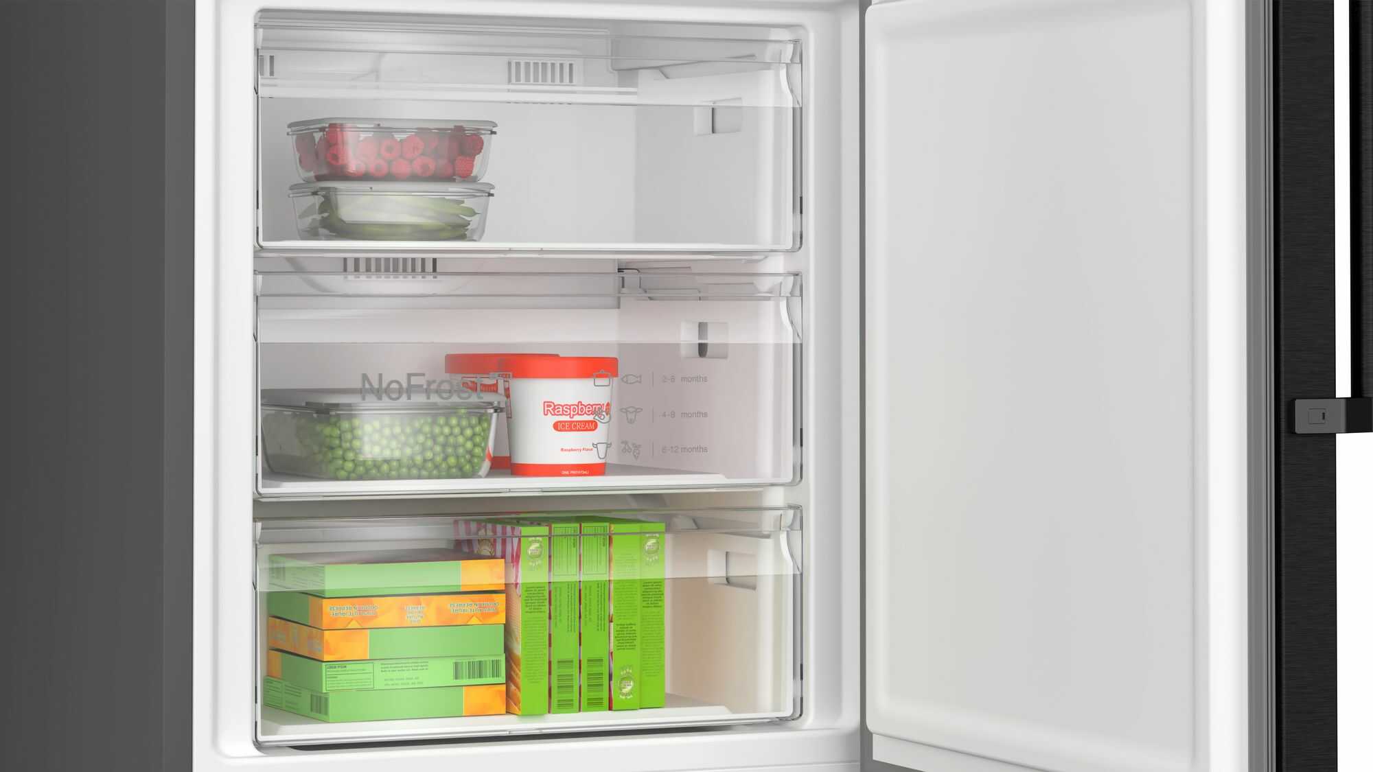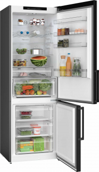 Serie 4 Volně stojící chladnička s mrazničkou dole 203 x 70 cm černá matná ocel s úpravou proti otiskům prstů, Total No Frost