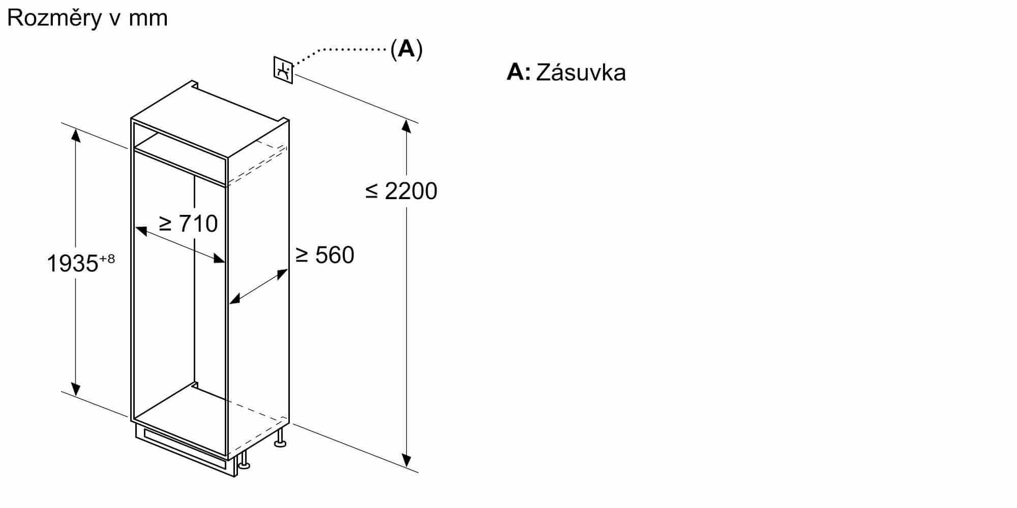 rozměry spotřebiče (V x Š x H) : 193.5 cm x 69.1 cm x 54.8 cm