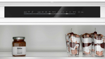 Chladnička, která se připraví na nové potravinyKdyž při odchodu na nákup aktivujete funkci SuperChlazení, chladnička na krátkou dobu sníží teplotu, aby ji čerstvý nákup nezvýšil. Teplota se sníží stisknutím tlačítka super (na maximálně 2 °C). Aby se předešlo zbytečné spotřebě energie, funkce se po přibližně 6 hodinách automaticky vypne. | ![]() |