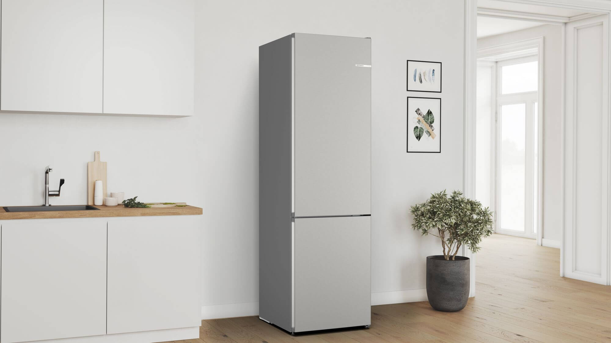 Serie 4 Volně stojící chladnička s mrazničkou dole 203 x 60 cm matná ocel s úpravou proti otiskům prstů, Total No Frost