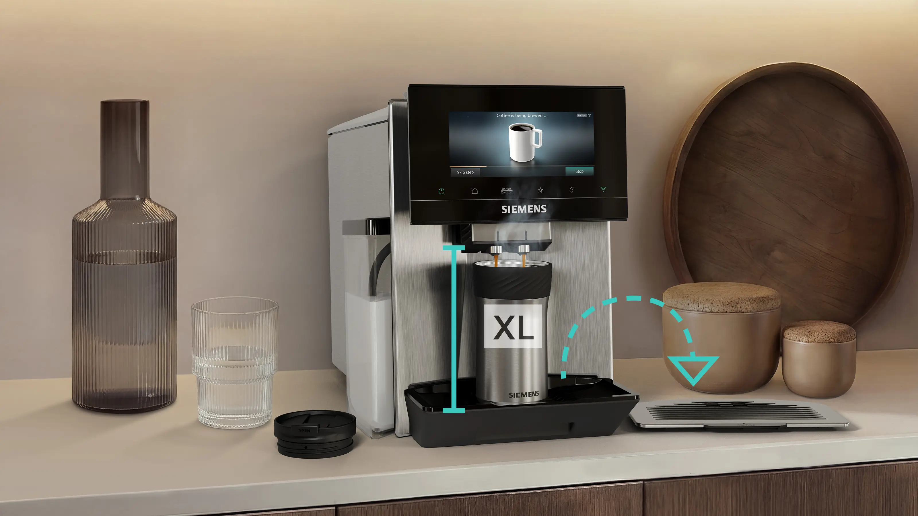 XL nápoje o objemu až 480 ml a nastavitelná odkapávací mřížka pro větší šálky nebo cestovní hrnky