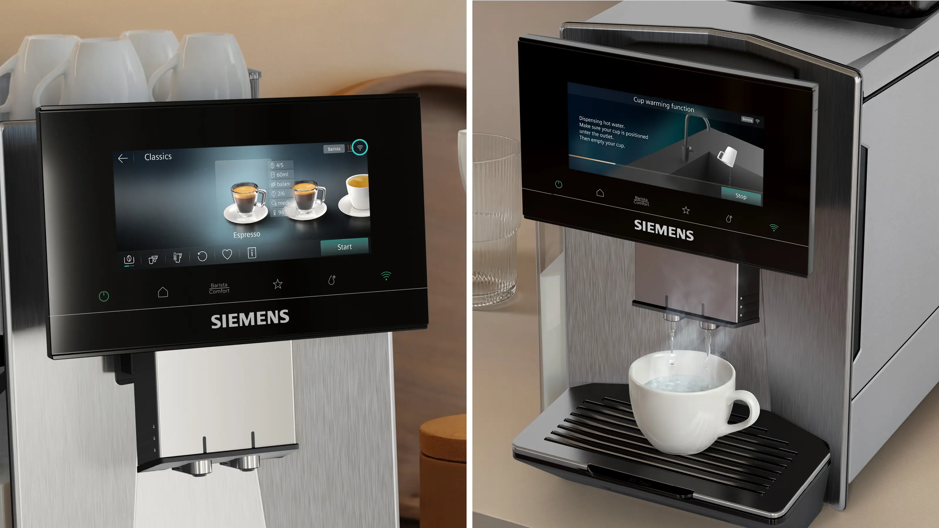 Užijte si ticho s kávou - superSilent.Díky technologii SuperSilent můžete začít relaxovat v momentě zapnutí kávovaru. Díky důmyslné konstrukci zařízení s optimální zvukovou izolací a speciálním těsněním je hluk výrazně snížen. To vše tvoří nejtišší plně automatický kávovar od Siemens. | ![]() |