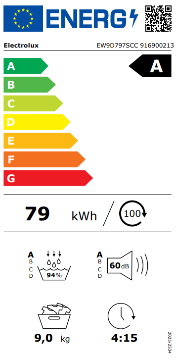 Spotřeba energie na 100 cyklů (kWh): 79