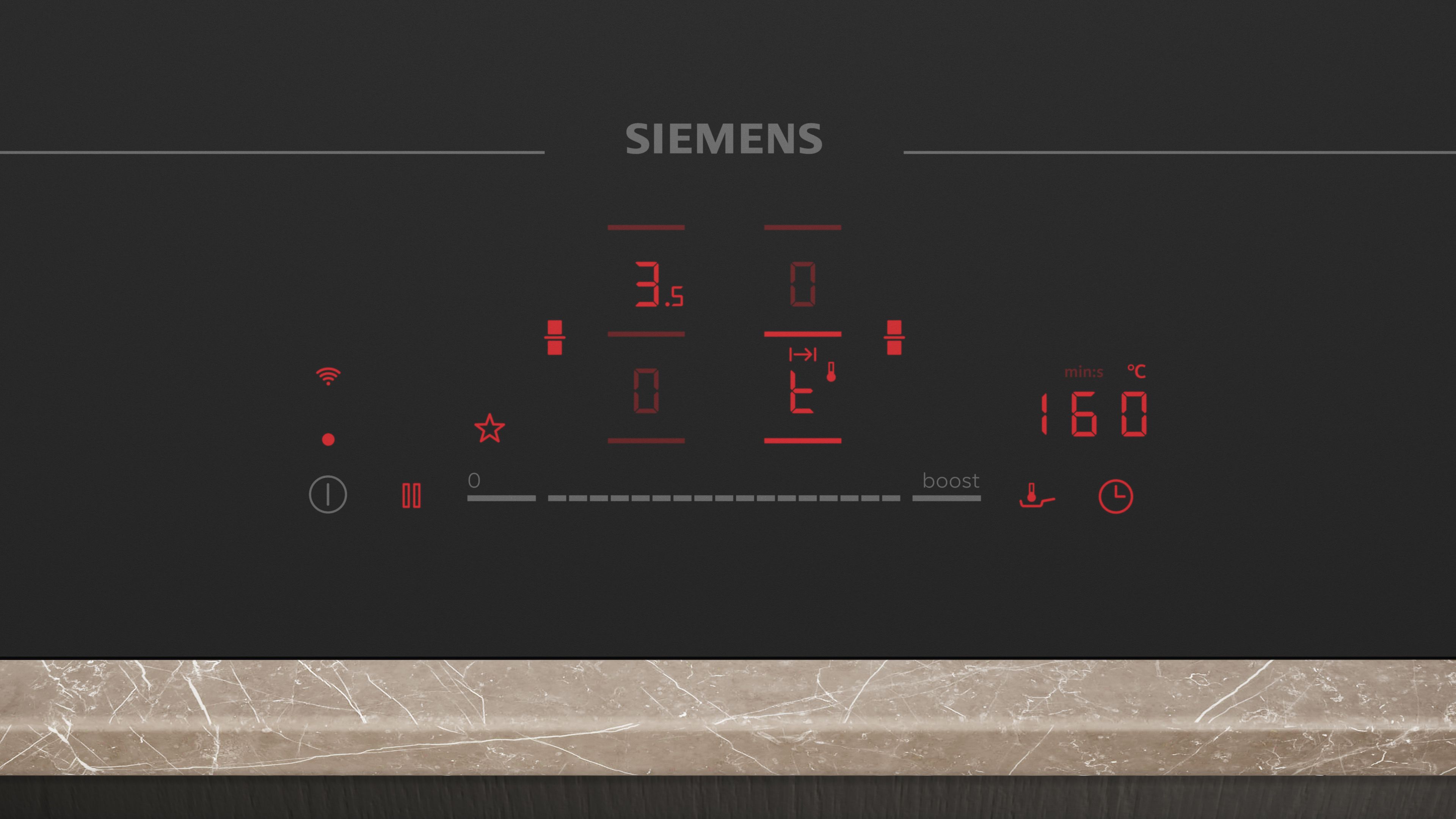 PowerBoost (nastavitelné pro všechny varné zóny): využijte o 50 % více výkonu při vaření např. vody, než nabízí nejvyšší standardní stupeň výkonu