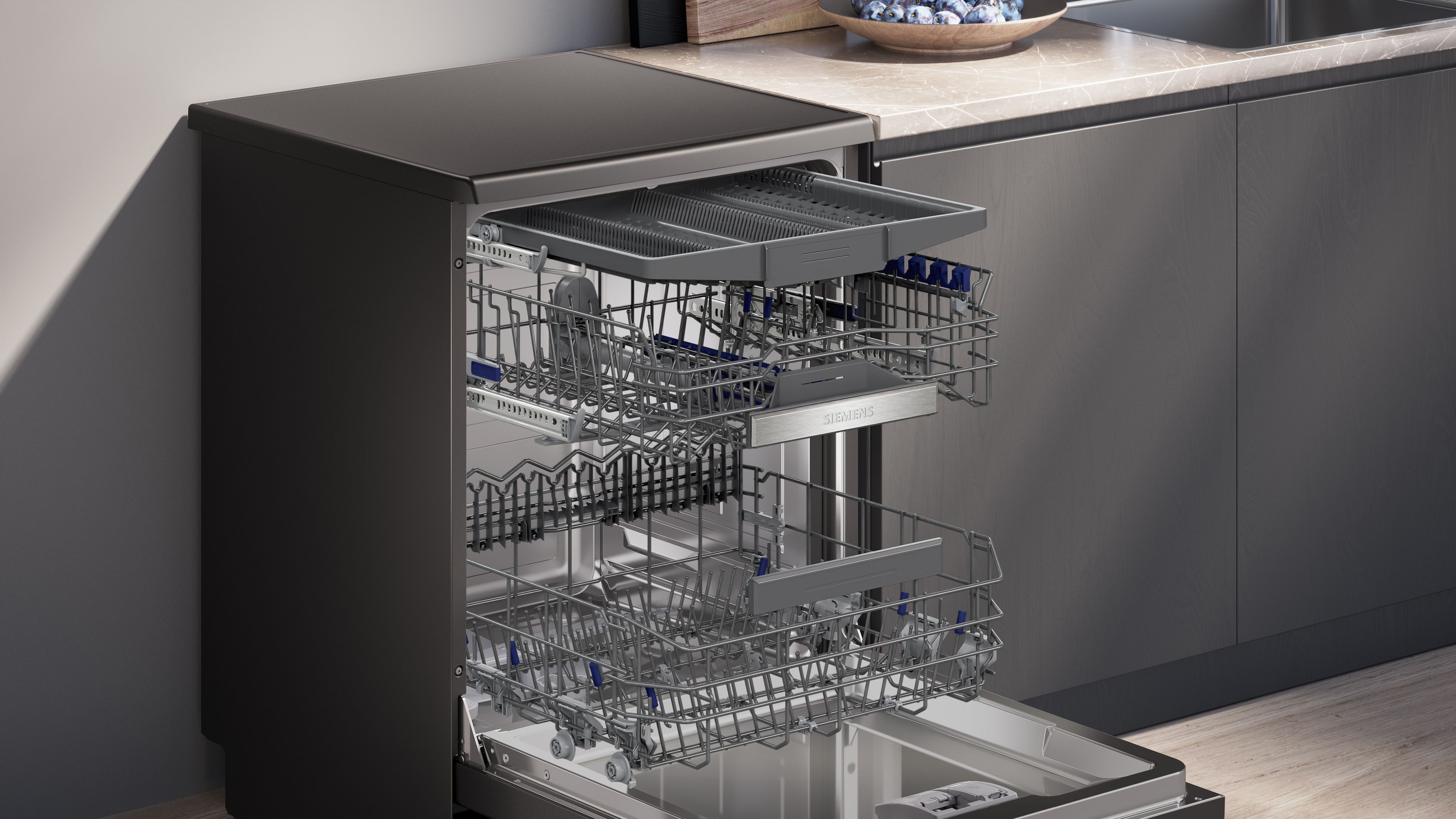 iQ500, Volně stojící myčka nádobí, 60 cm, Kartáčovaná černá ocel zabraňuje otiskům prstů