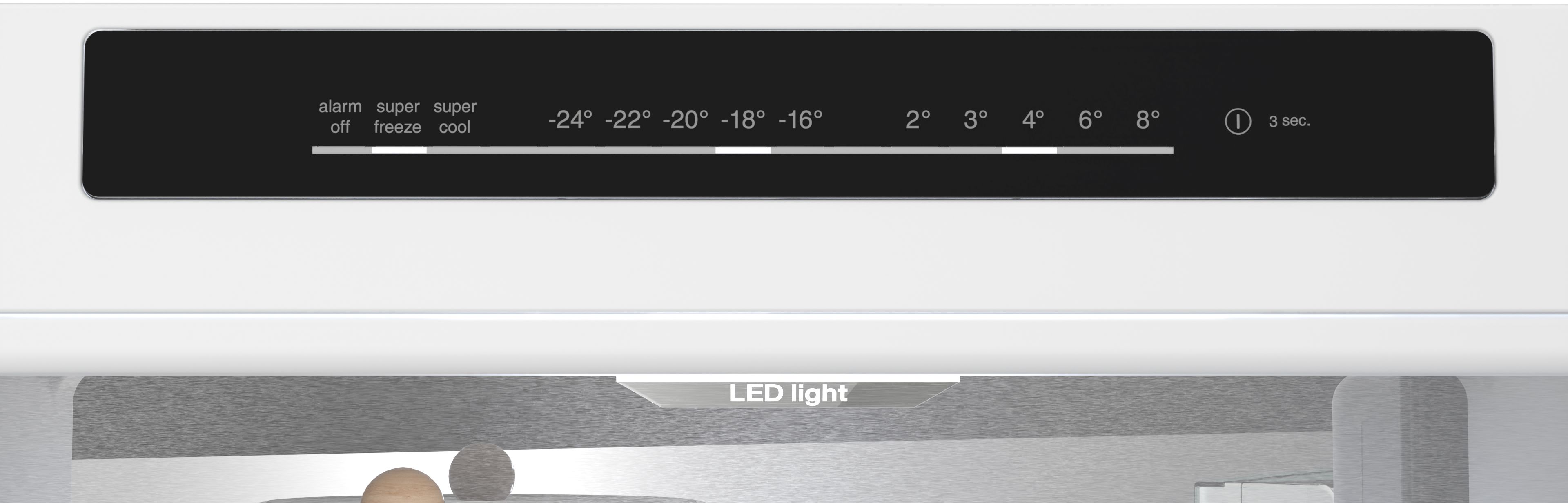 optický a akustický varovný signál při zvýšené teplotě ve vnitřním prostoru mrazničky