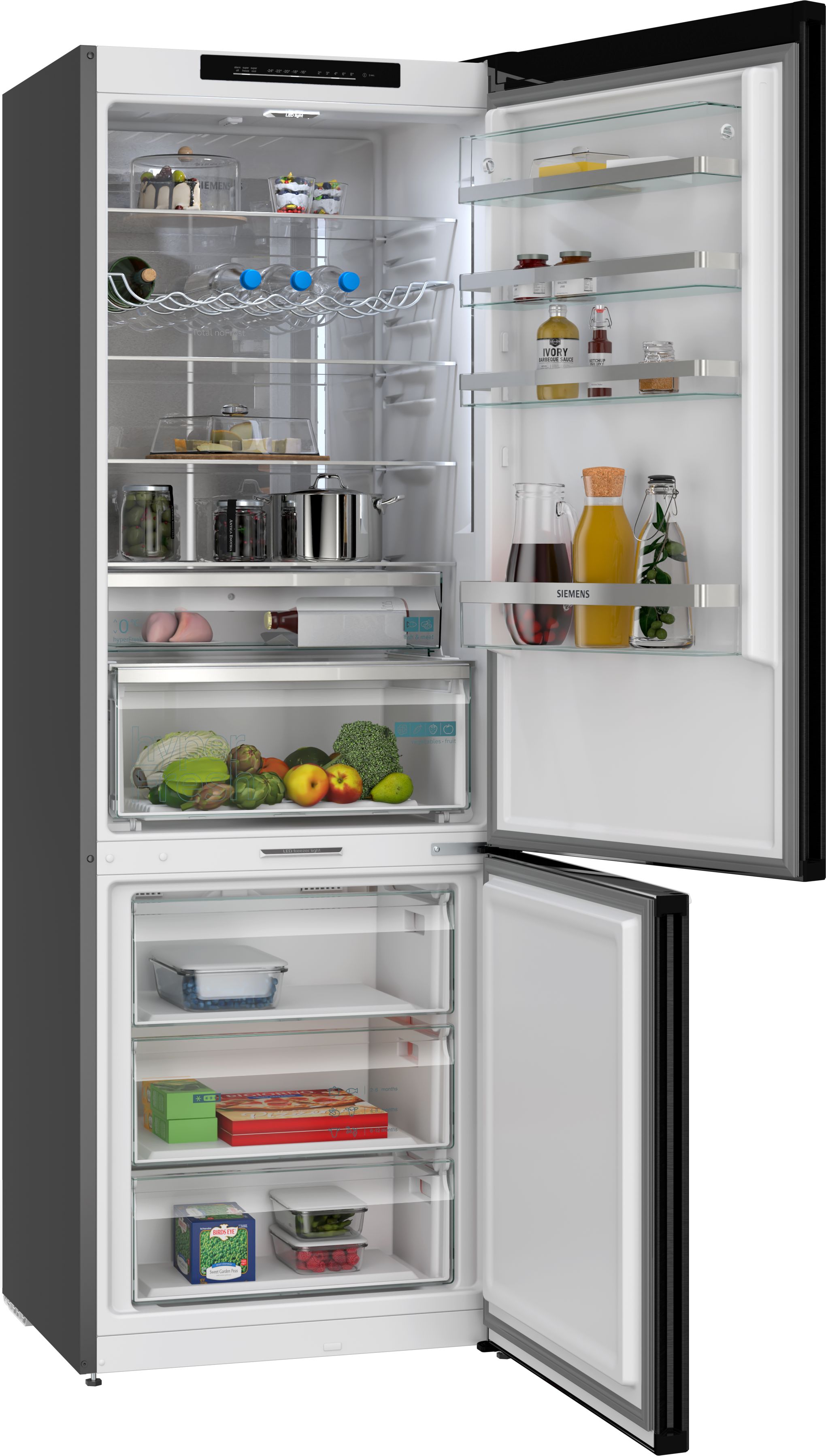 iQ500, Volně stojící chladnička s mrazničkou dole, 203 x 70 cm, BlackSteel