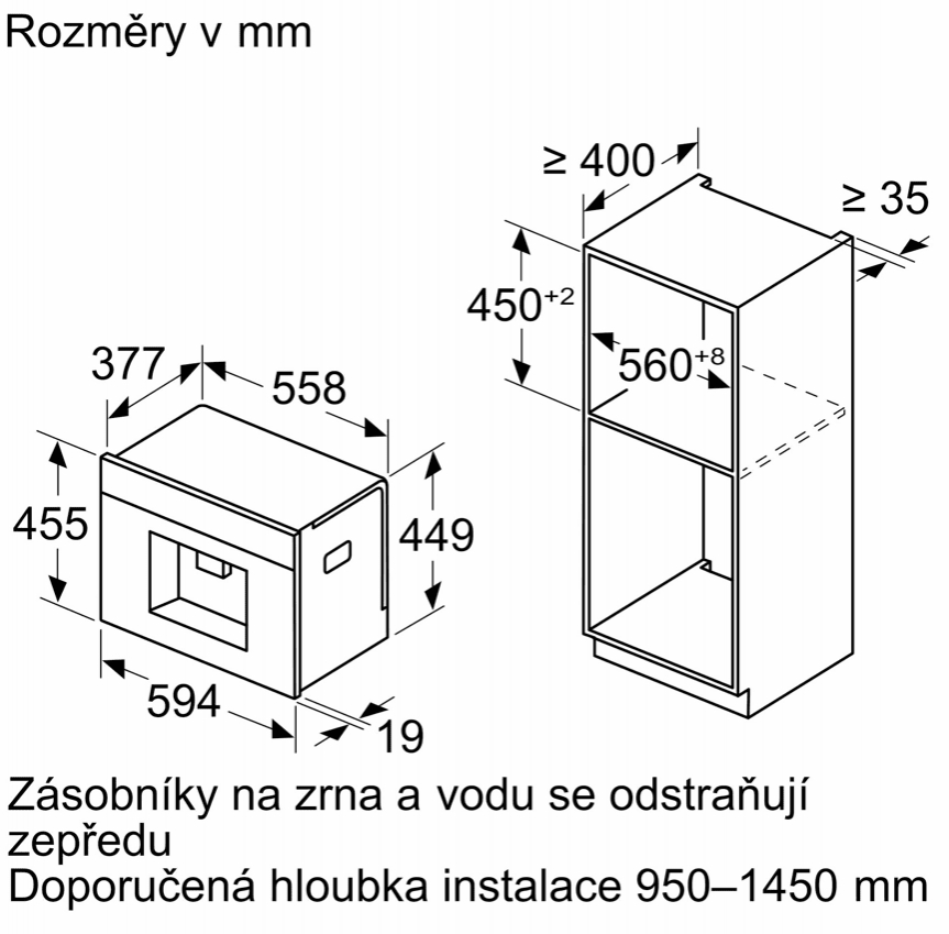 | Minimální výška výklenku | 449 mm |