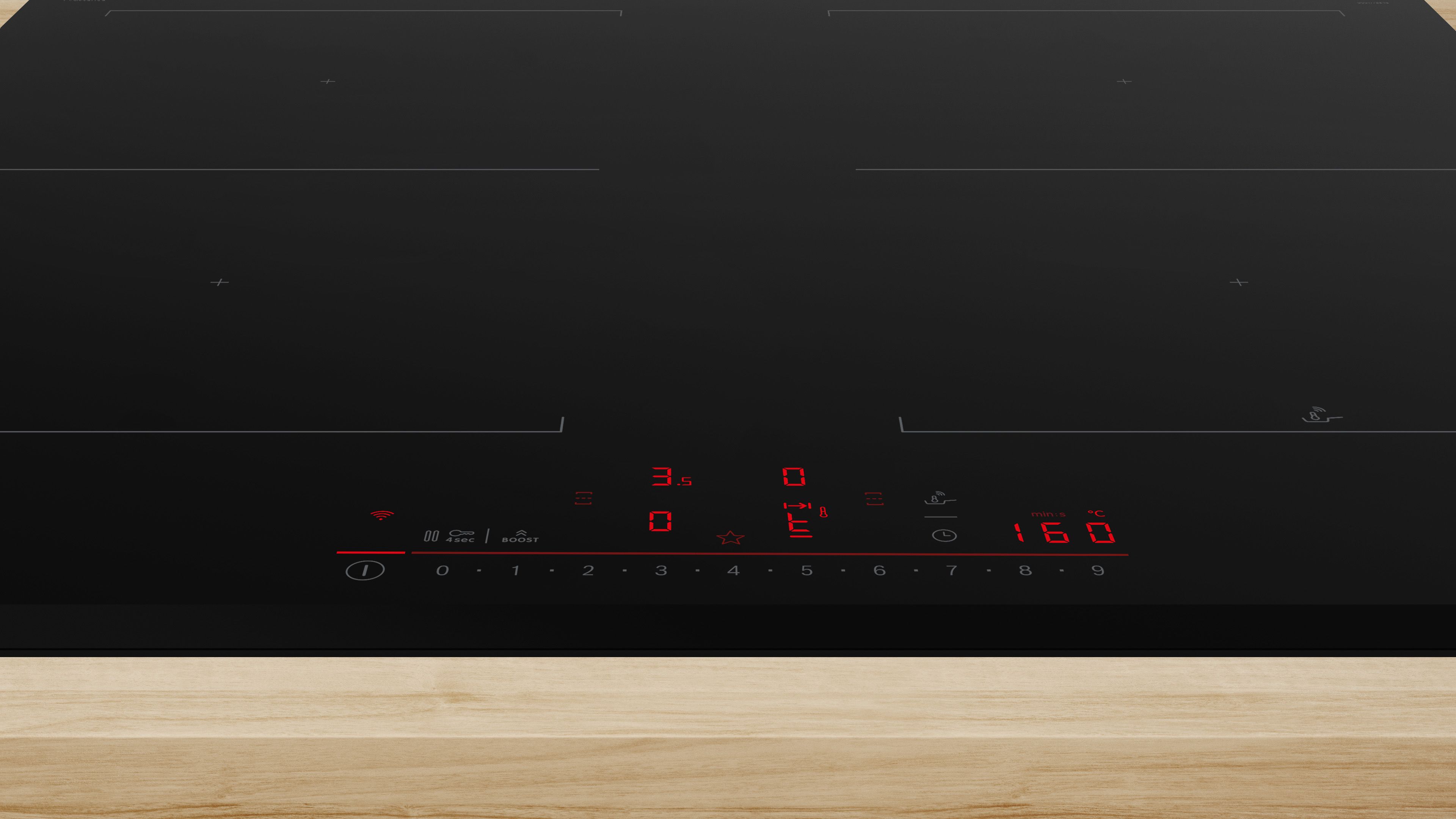PanBoost (nastavitelé prostřednictvím tlačítka oblíbené/aplikace Home Connect): rozehřejte pánve rychleji než nabízí nejvyšší standardní stupeň výkonu, a zároveň ochraňte jejich povrchovou úpravu